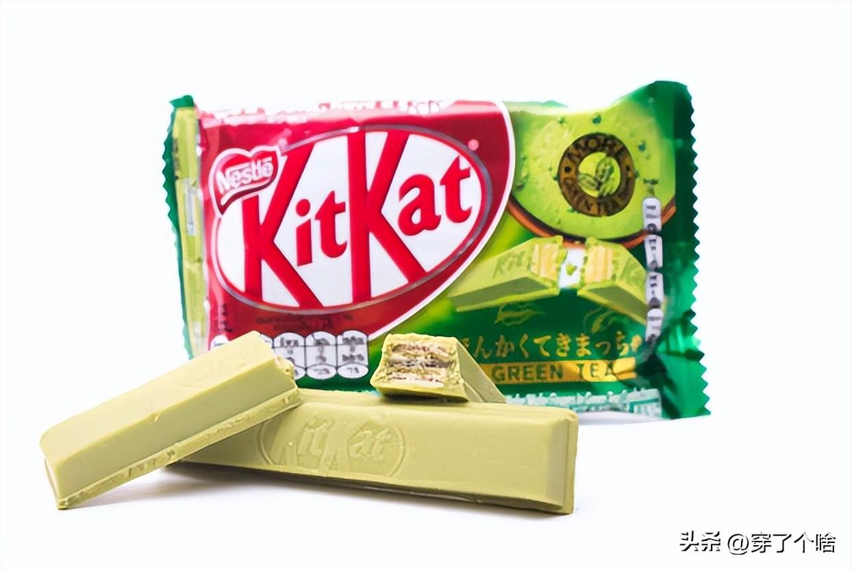 Kit Kat, 日本这款巧克力于20世纪30年代在英国推出,后来在日本受到狂热追捧。日本推出了300多种Kit Kat 巧克力的独特口味,包括绿茶(见图)、樱花、寿司、山葵和崇高红宝石。