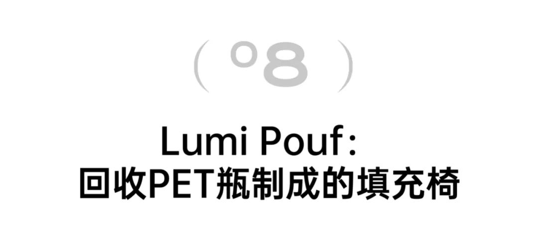 设计周期间,在NK Interiors展区,你可以看到Lisa的新作Lumi Pouf,木质的内核加入由回收PET瓶制成的填充物,结合构造工艺让填充物保持在低水平,提高座椅的舒适性与轻便度。