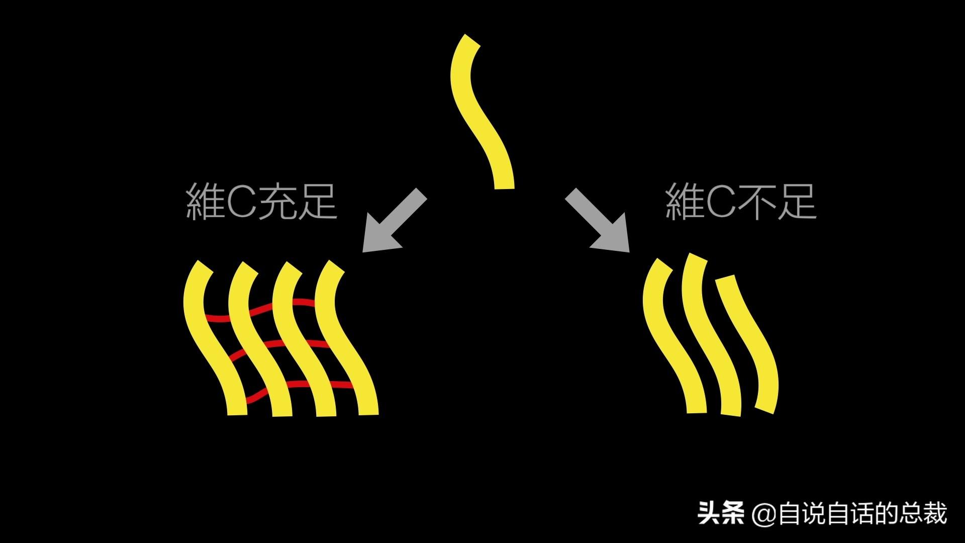 如果身体缺乏维C,合成出来的胶原蛋白就是松垮垮的。