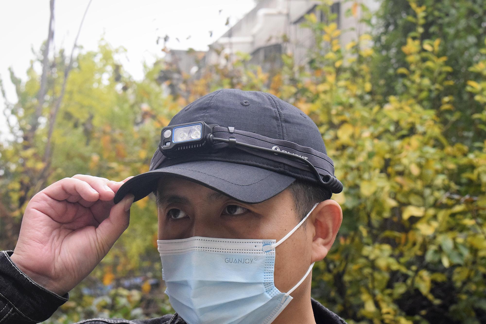 后来看下夜射表现:首先来看下佩戴时的真人秀展示,分别是戴帽前后的对比: