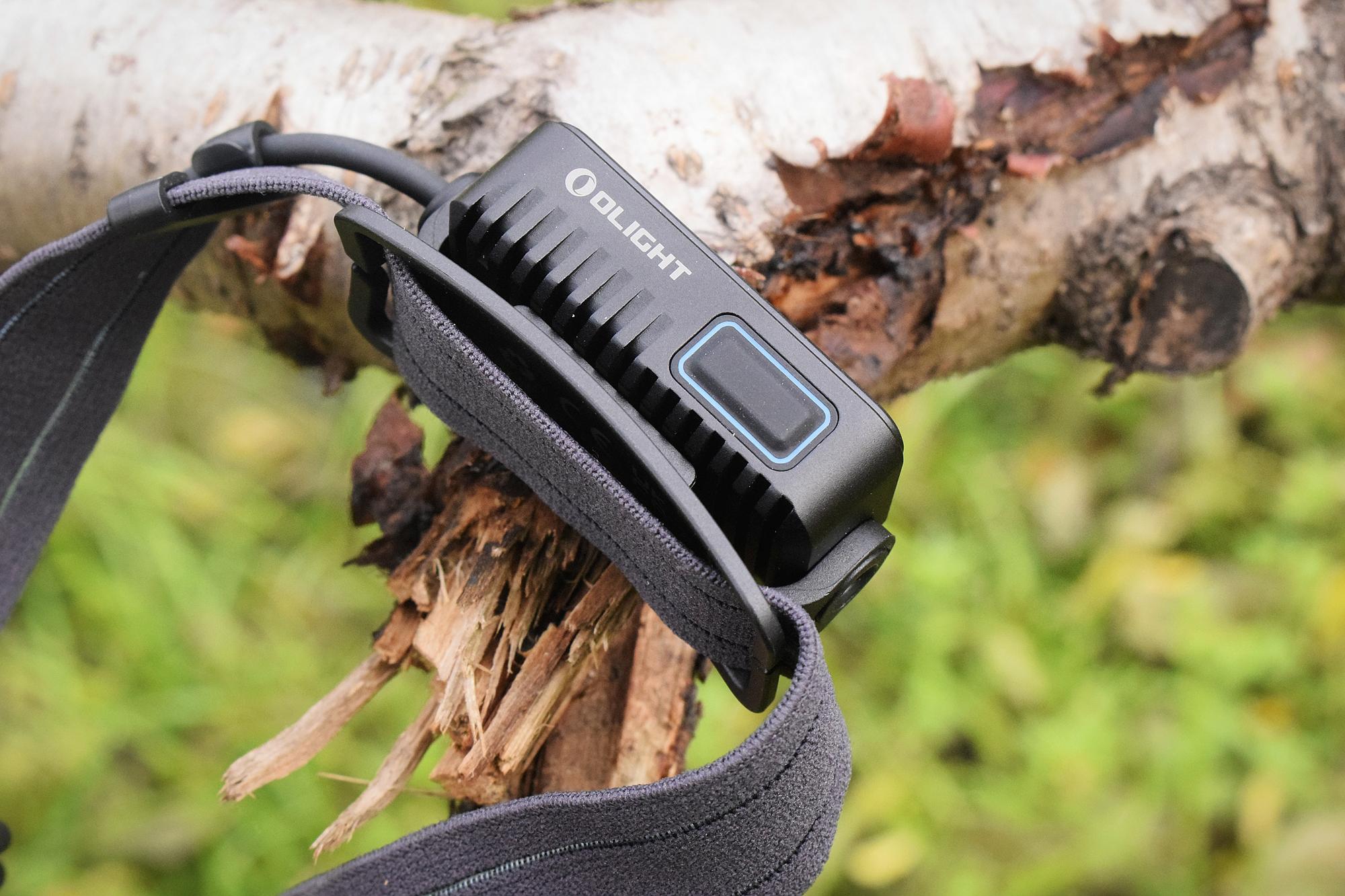 头灯沿袭了Array系列的分体式设计,它的灯头与电池模组是分离的,其间通过一根不可拆卸的线缆相连。这样在佩戴时给头部的前后重量大体均衡,也了稳固性与舒适度。头灯顶部一角的开关键也做成了方块儿设计,同样外圈有一圈幽蓝。短按开关,长按切换亮度档位,双击切换光源,三连击SOS。Array 2 Pro同样具有档位记忆功能,支持开关锁定(关机状态下长按锁键)。操作上很容易上手。