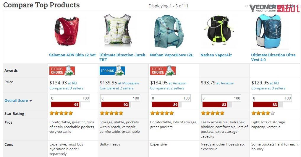 五名均为Ultimate Direction品牌,其产品以包内为主,另有部分服装,国内各大越野赛Ultimate Direction背包也是多的品牌。笔者本人也有使用它家越野包,确实很棒。四名为美国品牌Nathan,该品牌国内份额不多,不过还是能看到,所以价格会有优势。