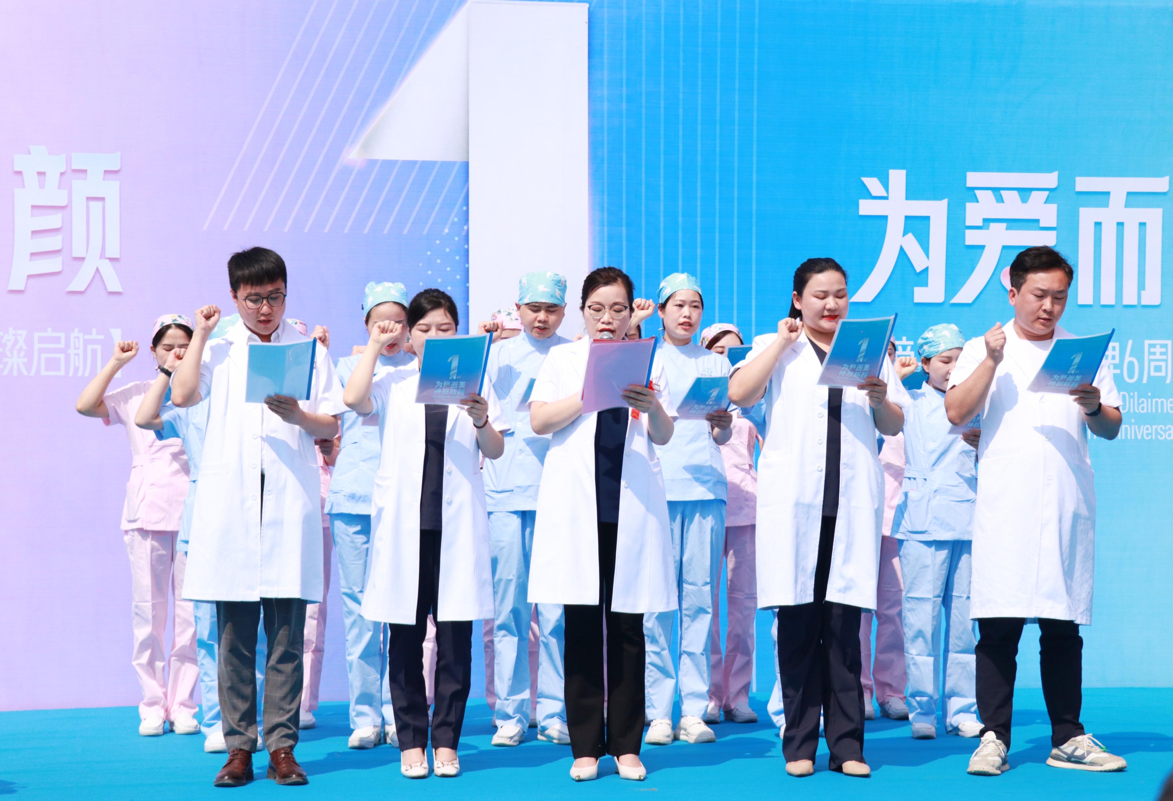 开业仪式上,洛阳缔莱美医疗美容成员庄严宣誓“我承诺,坚持以身作则,坚决使用;做到依法执业,杜绝无证行医……”