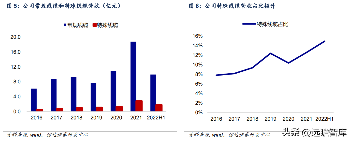在新的需求下,公司特殊线缆营收占比由 2016 年的 7.8%提升至 2022H1 的 14.9%。