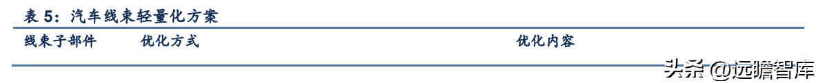 汽车线束轻量化方案主要包括材料轻量化、结构优化和布局优化。