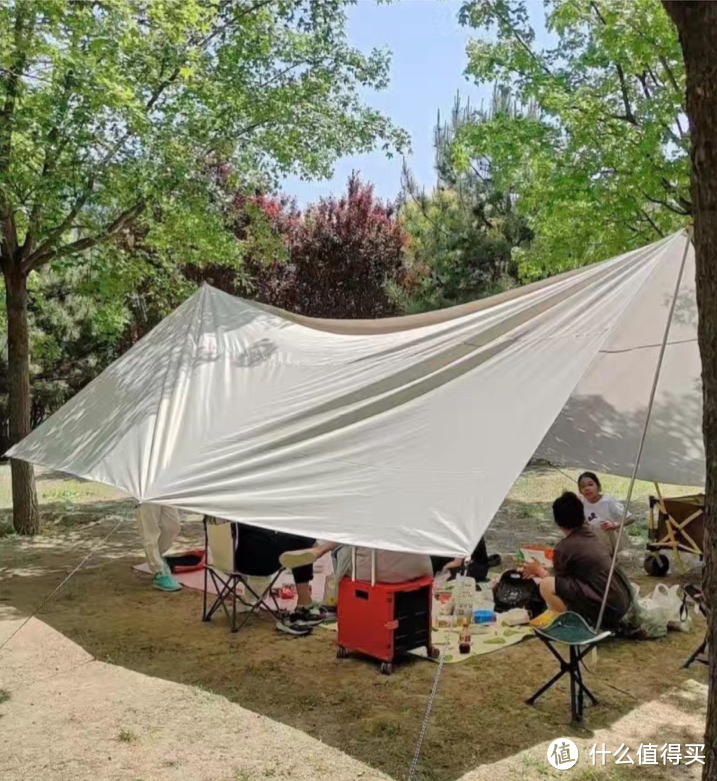 不过推荐入手还是这家的天幕!100元就能入手一套配件齐全、收纳方便的天幕,涂银牛津布,这个性价比还是可以的!周末在周边营地或是公园玩一玩,够用。