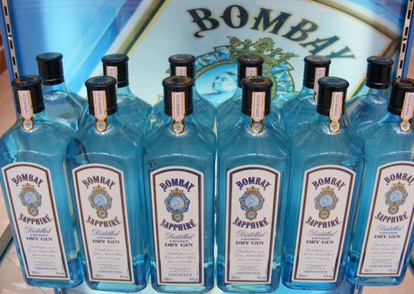 孟买蓝宝石(Bombay)金酒来自英国,其配方是基于一款 1761 年的传统配方,在酿造过程中经过三重蒸馏,酒精蒸汽会通过一个装有 10 种植物香料的篮子,从而获取植物独特的风味。这个品牌初由百加得集团(Bacardi)于 1987 年创建,蓝宝石金酒引人注目之处在于它芬芳四溢的芳香,此外它是一款比较温和的蒸馏酒,适合用来调配多种多样的鸡尾酒。
