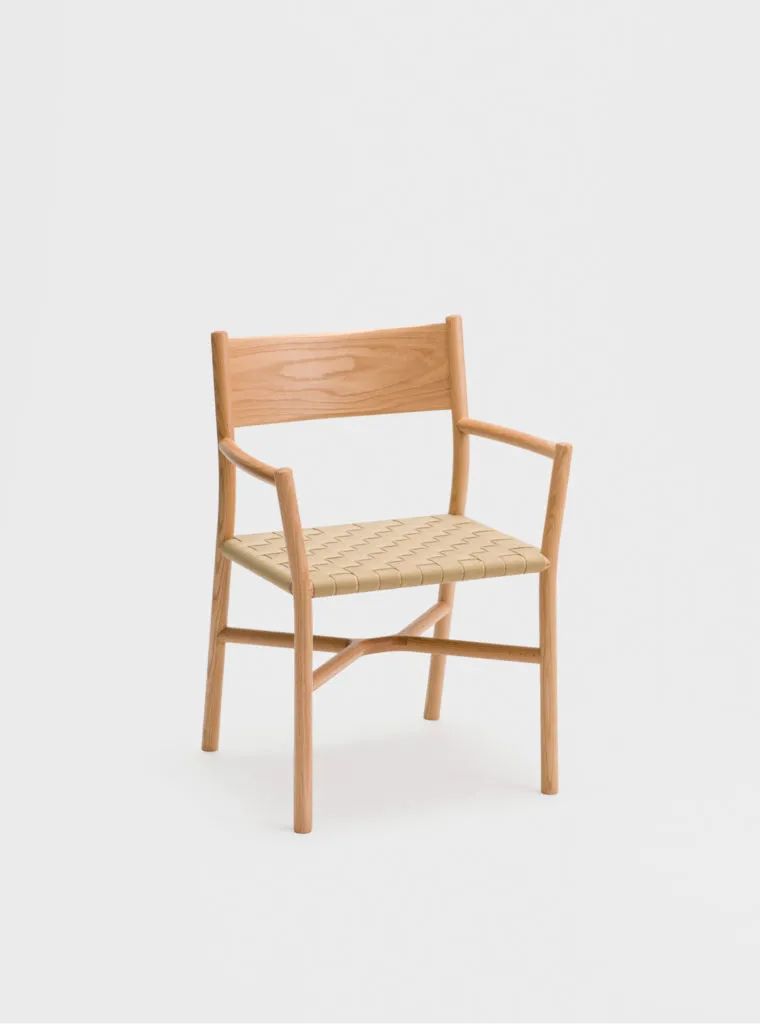 接下来七款家具都是 Tan 为日本新家具品牌 Ariake 所设计。椅子、长凳融合了手工与现代技术,形式上也结合了古典和新细木工的细节,选用多种编织材料,使其可以与多种空间融合。