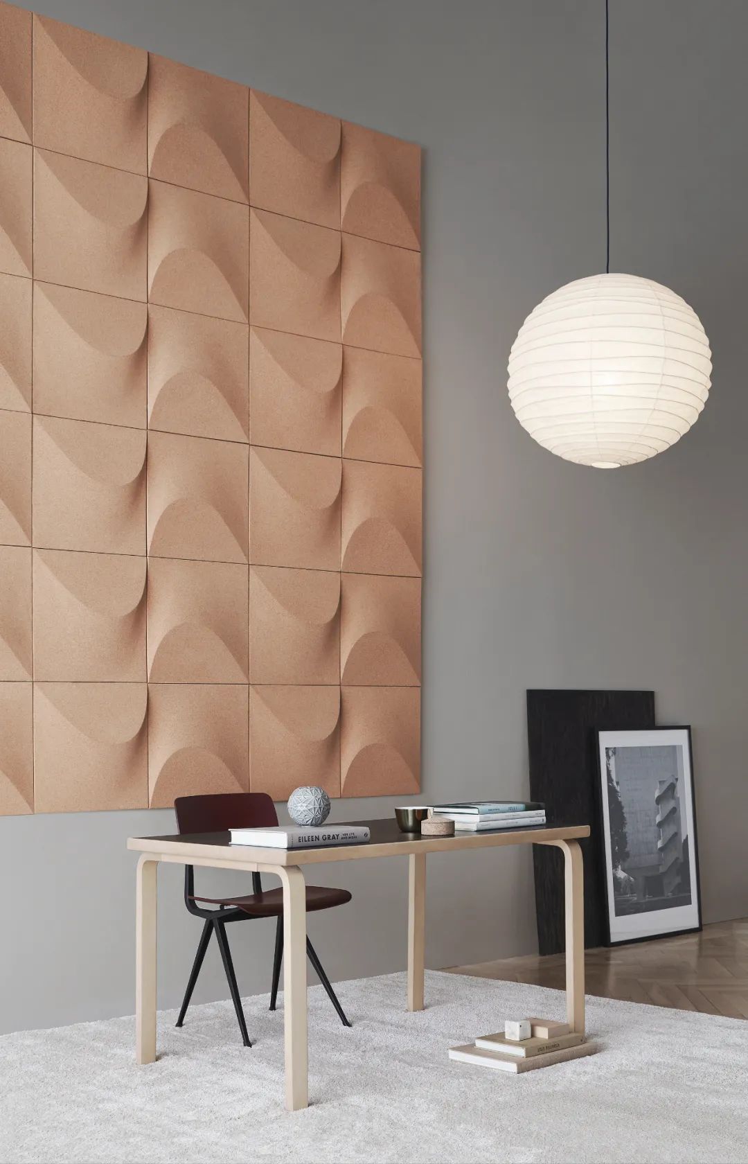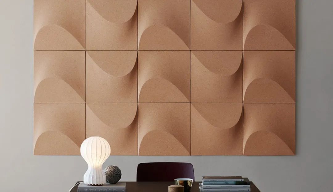 Tan 创作软木墙板,具有出色的声学性能。它简单而又自然,就像微型沙漠一样,视觉上有一种动态的几何美感。