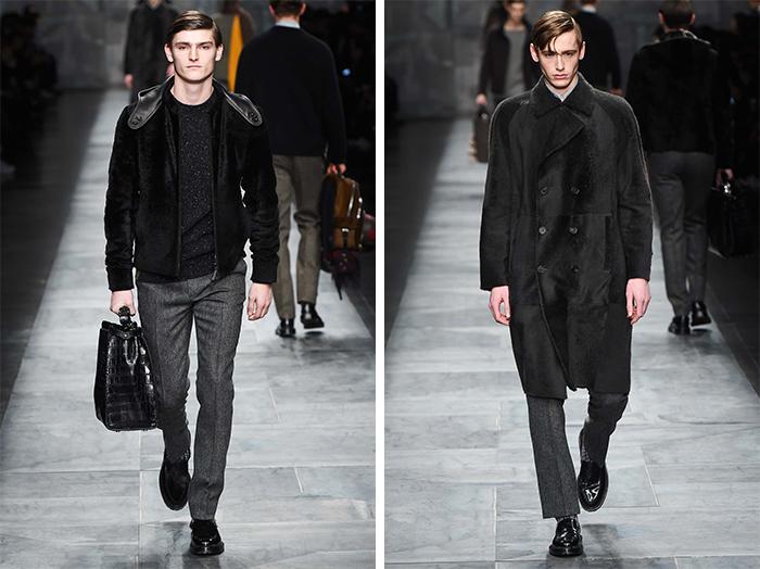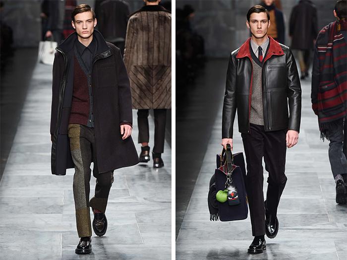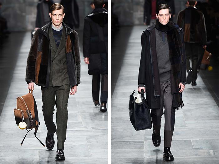 北京时间今天凌晨,FENDI 在米兰发布 2015 秋冬男装,品牌第三代传人兼配饰设计总监 Silvia Venturini Fendi 再次展示了她对男装的驾驭功底,就如同女装之于 Karl Lagerfeld 一般得心应手。FENDI 对皮草的偏爱无以复加,工艺处理也是鲜有敌手,看上去像是灯芯绒般的面料实际上是皮革。短绒皮草与针织衫嫁接起来,皮草被切割为方块再重新拼接。至于配饰,更是 Silvia 得心应手的部分,应该没有人会忽视包上跳跃的小苹果,已经可以想象它将会变得多么的抢手了。