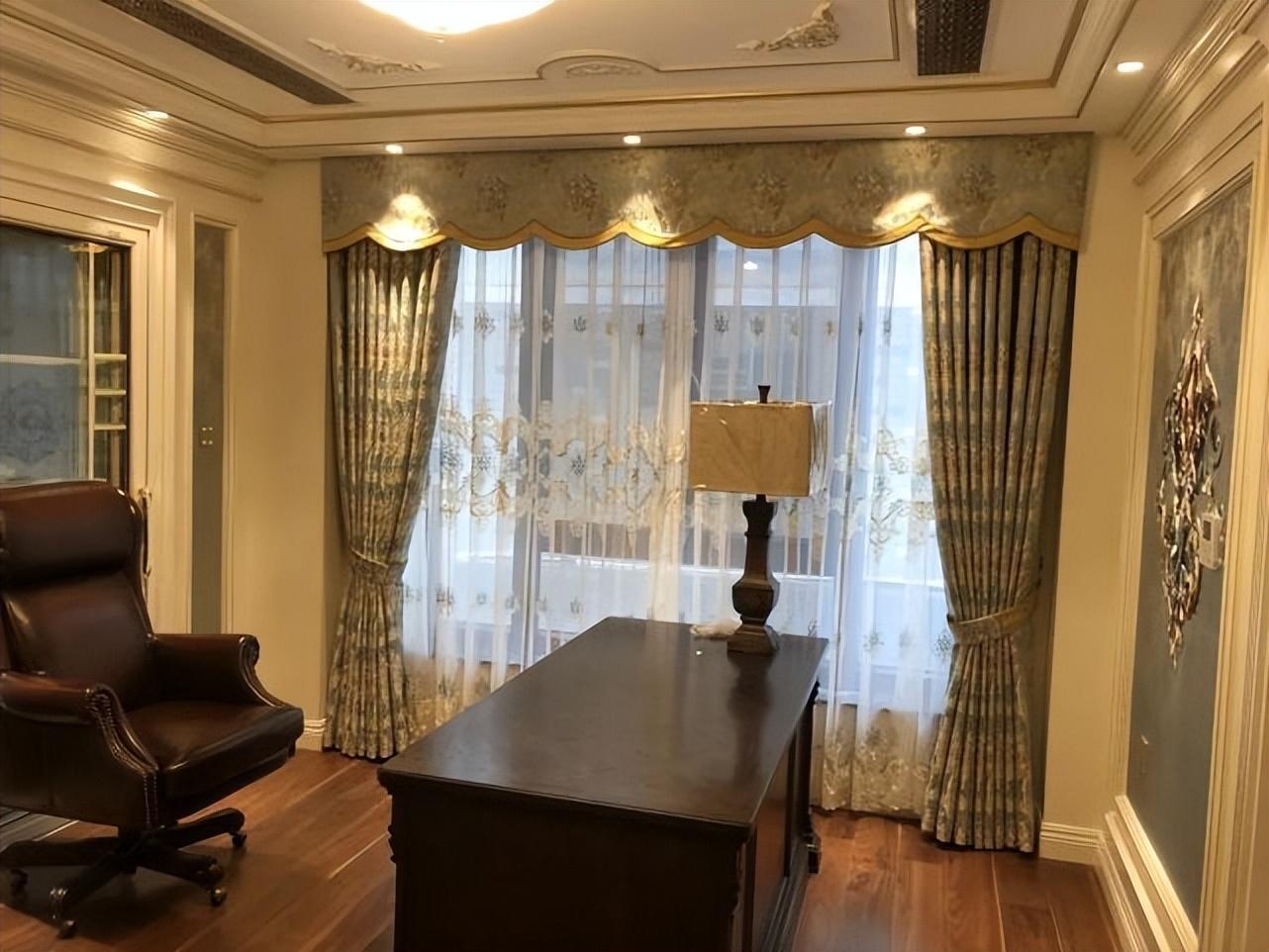 静雅安静是书房需要的元素,因为我们常常使用这个房间工作与学习,所以在风格上新中式、简约、轻奢会是不错的选择,搭配上蓝色或灰色的窗帘,这种沉稳自然的颜色也能给身处在这个空间的人们更多的精力,更能专注在手头的事情上面。