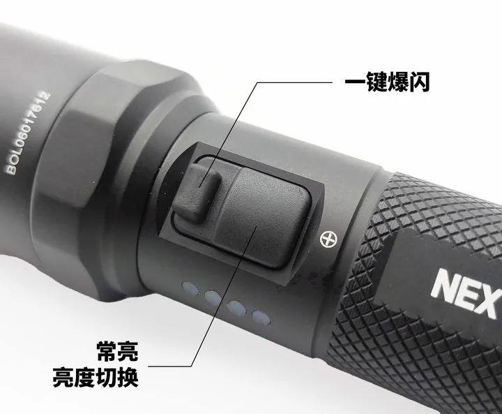 按下一键爆闪,手电将释放高频率强光,在黑暗环境下将直接眩晕前方无眼部防护的人群,除非遭遇危险情况,切勿对准他人使用。