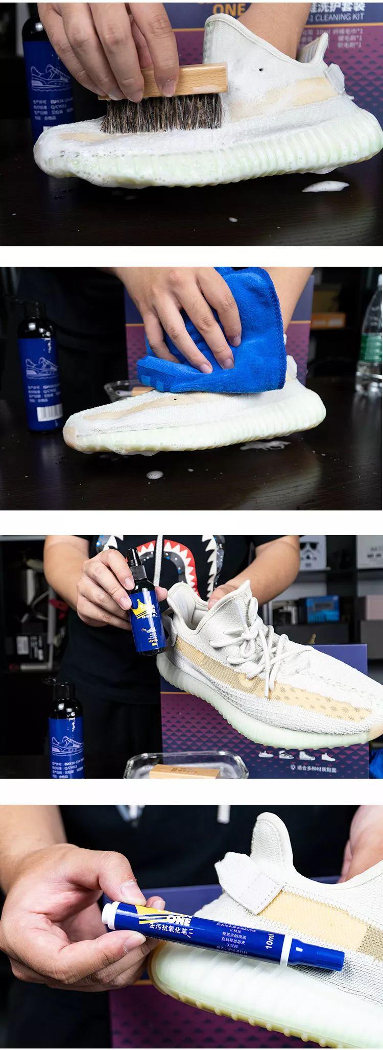 编织鞋面的纯白 Yeezy 350 V2 和皮革、织物鞋面的 Air Jordan 11 小编都洗过,果显著,并且操作起来很简单。