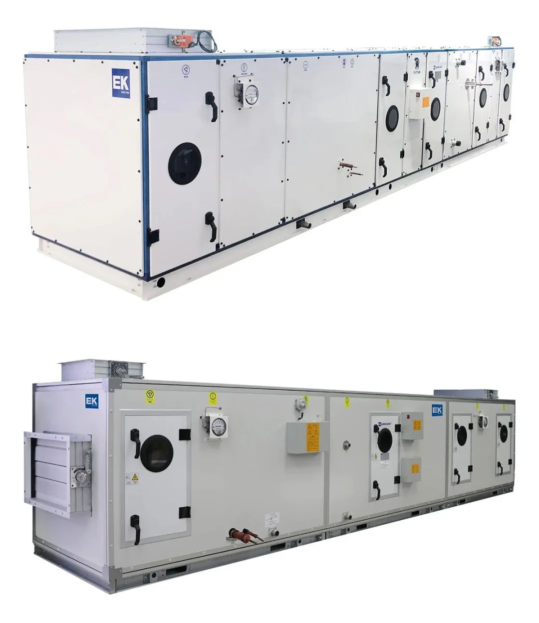 EKDX全变频直膨式空气处理机组集送风、制冷、供热、加湿、除湿、空气净化及电气控制组合为一体,能适应室外-30℃~55℃的宽广气温范围,满足高洁净等级、恒温恒湿、低噪音控制的洁净室工程。