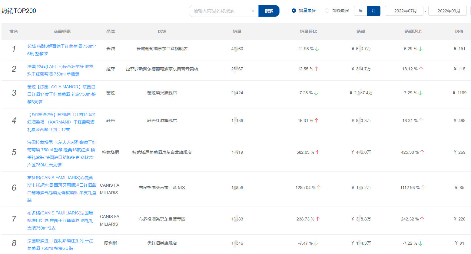 那么,今年第三季度整个线上的酒类市场表现如何?我们一起来回顾一下鲸参谋监测的2022年第三季度京东平台酒类三大品类销量数据!