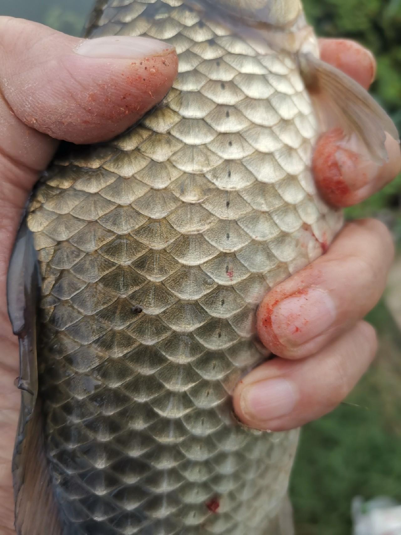 真是宝竿旗开得胜开光大吉灵验!第一竿就上来一条半斤多的大板鲫,真是大鲫大鲤啦!
