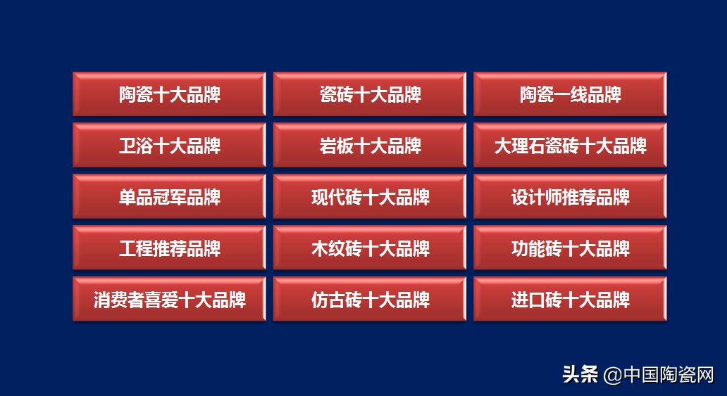 随着陶瓷行业市场竞争不断加剧,被誉为“陶瓷行业百花奖”的“建筑卫生陶瓷十大品牌榜”评选竞争日趋激烈,其影响力也正在与日俱增,已经成长为消费者选购陶瓷产品衡量品牌价值的榜单。