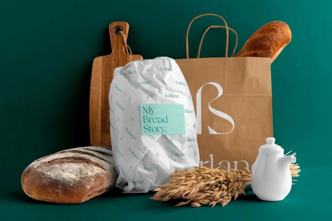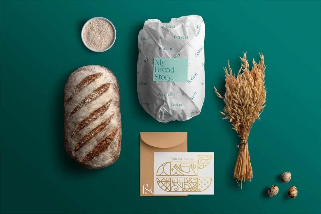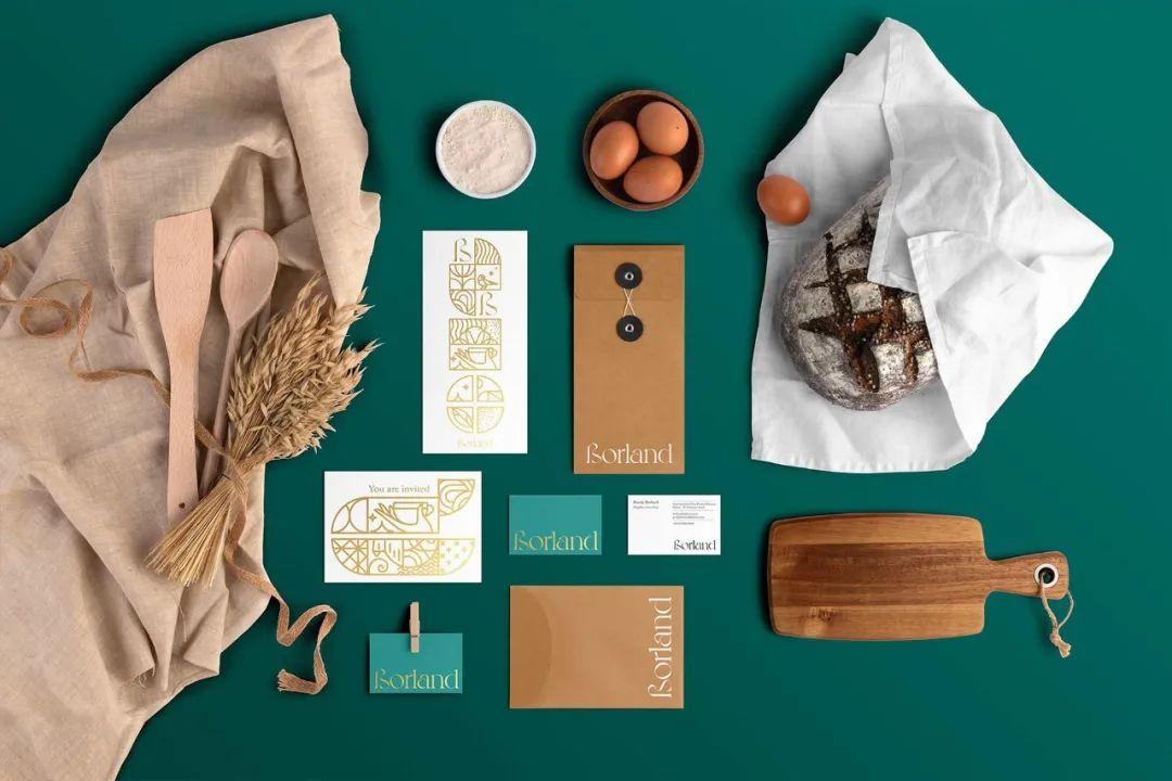 Borland 是由 Randy Borland 创立的一个新的面包店品牌,他的名字也被用作面包店的品牌名称。Borland 面包店标志是一种带有衬线字体的标识,在每条曲线、每条线中都具有强烈的特征。选择了中度的绿松石绿作为品牌的主色调,并结合了金箔的执行力,提升了品牌的视觉奢华感。取自面包成分的线条图形元素作为图形图案。