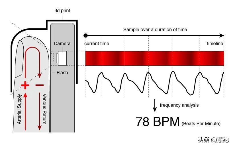 运动时心跳加速,手腕内的血管扩张,血液流量增大,但因为红细胞会吸光,所以反射到感应器的光线也会随之减少,光电手表便能探测此差异并计算出心率变化。