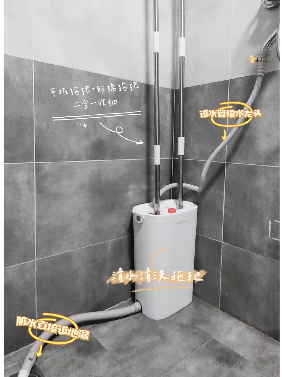 依然是需要连接水龙头使用,净污分离的方式,脏水直接排进地漏。未来清水清洁拖把的这个需求可能会被越来越多人接受,毕竟脏水看起来都不卫生。