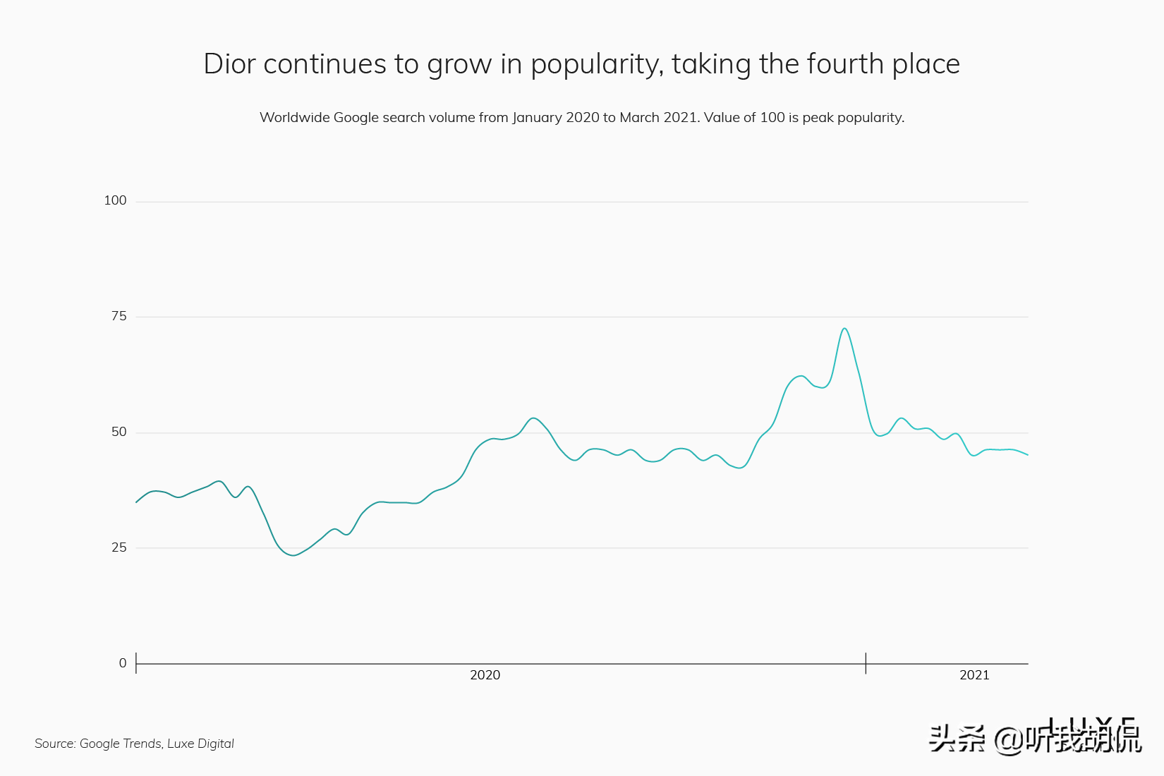 方法论和来源:我们如何对年度佳品牌进行排名Luxe Digital 的品牌排名旨在提供对在线受欢迎品牌的实时和有洞察力的分析。我们的排名清晰地展示了每个品牌在网上的表现,并可以帮助商业预测未来的增长。