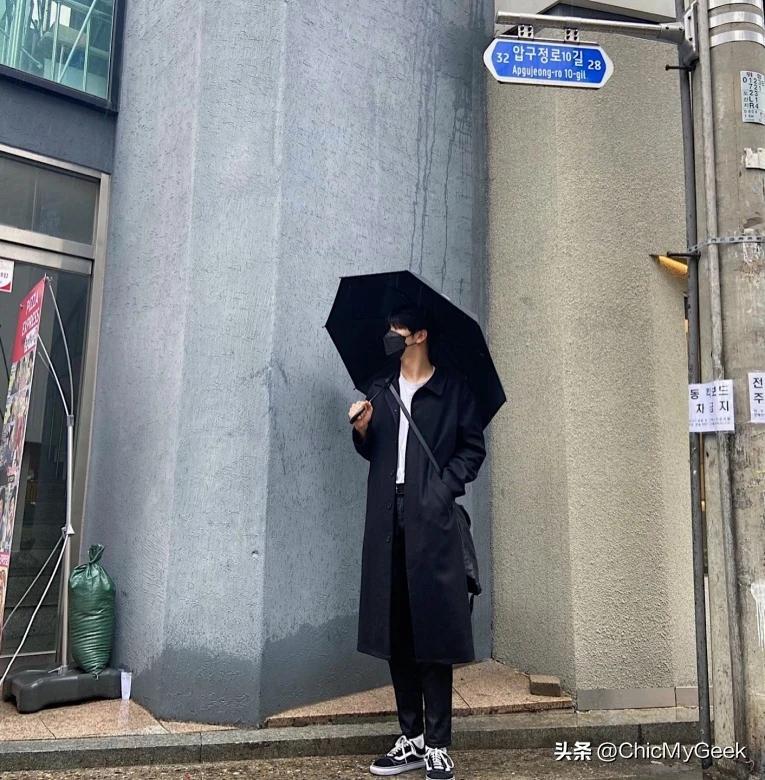 崔秀彬穿上白T恤配黑色窄脚裤,外搭黑色长外套凸显身高优势,Vans平底鞋上的白色标志也与上衣呼应,低调之余配搭得宜。