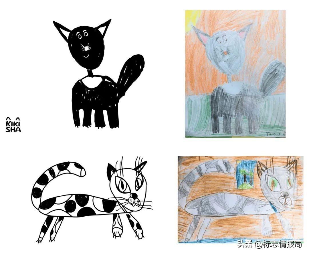 无奈之下,设计师想到了一个的方案。既然要儿童绘画的果,为什么不直接请小朋友来画呢?于是他们前往幼儿园,集结了一群只有4岁的小朋友,画了20只漂亮的猫。每位小朋友的创作都很酷,设计师后挑选了一些有趣的作品并将它们重新绘制成矢量插图。