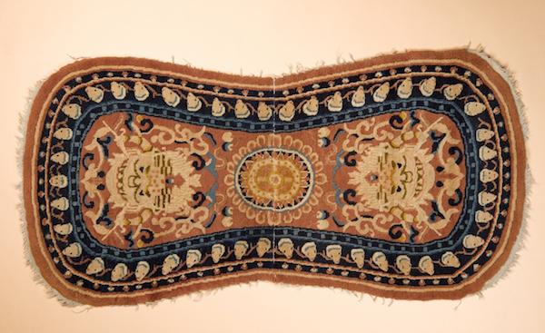 这批地毯是波斯特博士自20世纪80年代起在中国收集所得,产地主要为宁夏和西藏,另有少数来自内蒙古等地,均为19~20世纪的织品。经过国内多位地毯专家的鉴定,发现该批地毯种类多样,有卡垫(坐垫毯)、马鞍毯、坐禅毯、靠背垫毯、抱柱毯和闶毯等;纹样有佛教(七珍八宝)、道教(暗八仙)、宫廷艺术(龙、海水江崖)等多种样式,风格多元。也有富贵长寿、平安吉祥等寓意的花鸟等题材。其中的藏毯和蒙古地毯品相尤好,属于珍贵品。据波斯特博士来信所述,该批地毯的寻访和收藏是他在上海、香港任职期间以及前后多次访问中国时进行的,其中不少西藏和内蒙古地毯都由波斯特博士亲自前往当地挑选,凝蓄着他对中国地毯的珍视。