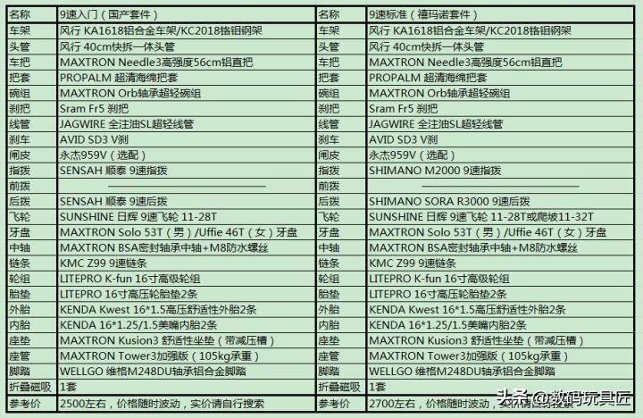 以上配置仅是为了展示自组折叠车大概需要购买的配件种类,供喜欢DIY的玩家参考,不作为“性价比”购买推荐,无需完全按照上述配置单自组整车。