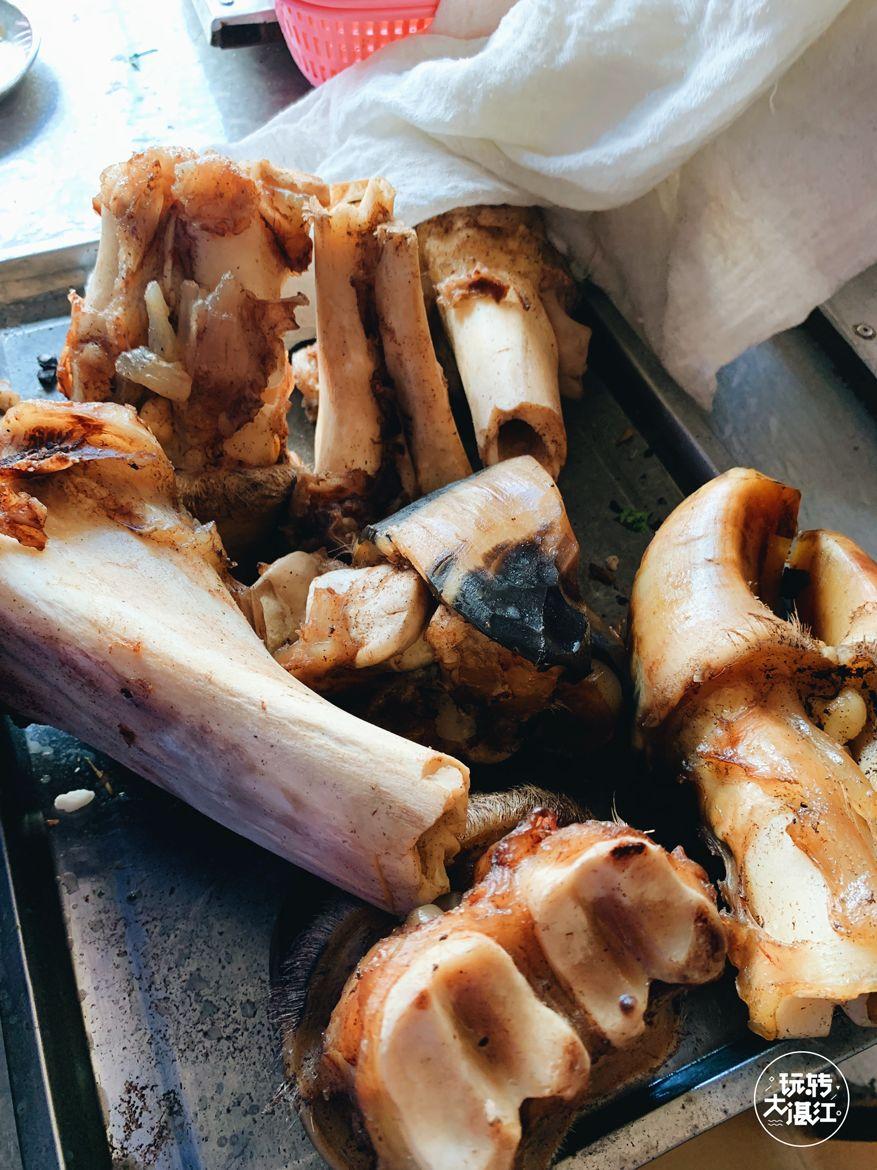 山长水远的去坡头为的除了牛杂,就是这根比手臂还长还粗的牛骨来到这里,一根12块,端上桌吓一跳,这分量让我怀疑价格。