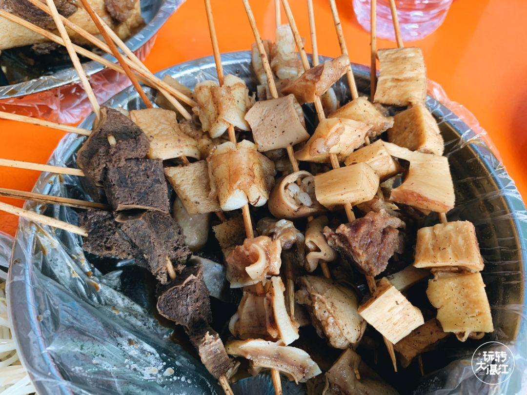 店里还有种类丰富的牛杂串,2元起步,说实话我觉得有点小贵了,先不管价格,先挑为敬,每串的分量还是挺足的,点份牛骨汤加几串牛杂就能让我满足一天。