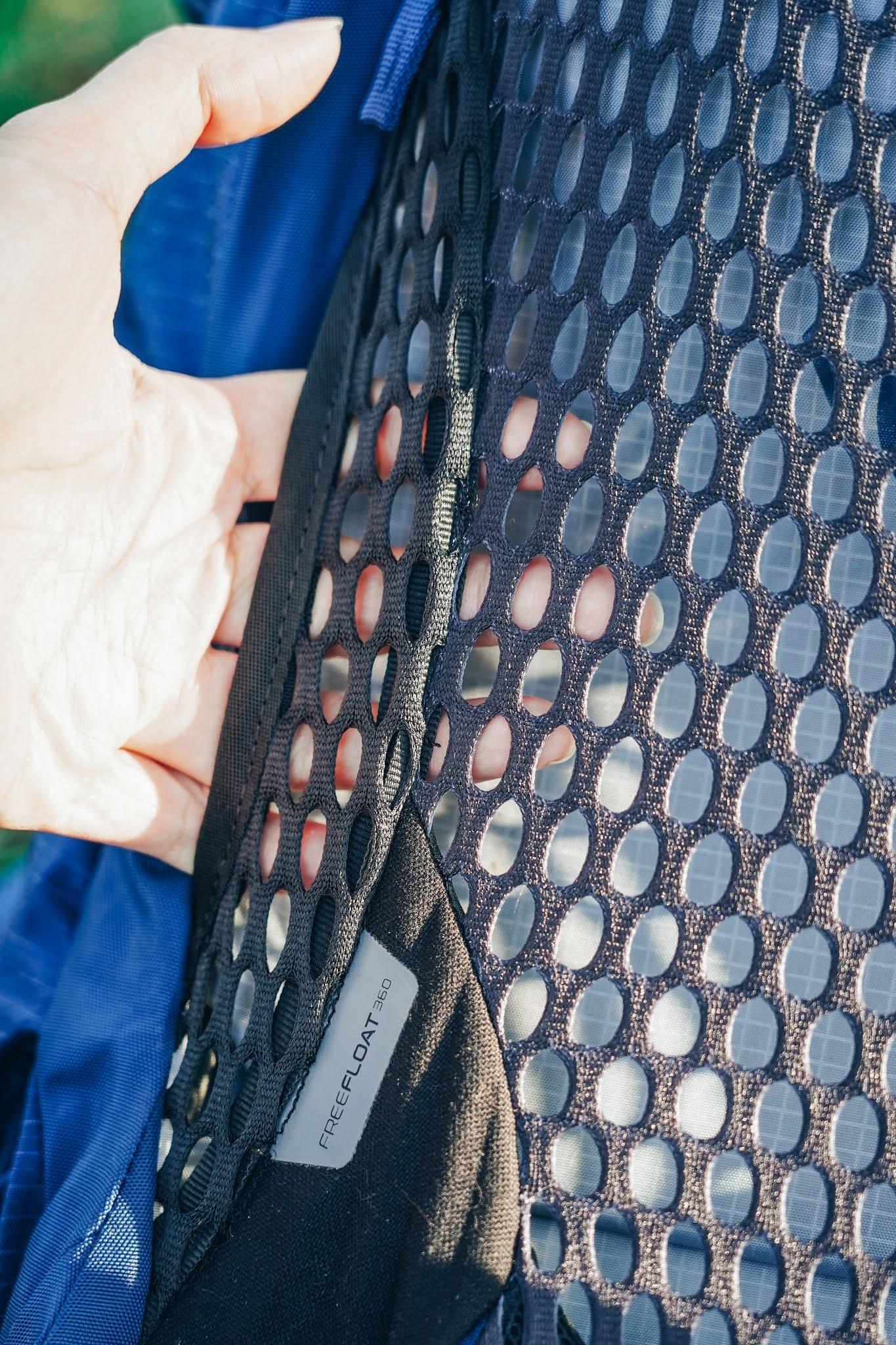 背面标有一块FreeFloat 360的小标签,代表Katmai/Kalmia使用的背负系统,肩带可随着身体律动,带动背部和腰部自动调整去贴合身体,减少背包重量带动身体的晃动,背久了比较不会累。