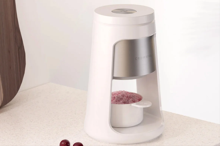 这个标志性的设备被称为“冰浆机”,它模仿了一个倒置的冰锥!它根据需要刮冰,并将精细的冰浆分配到下方的容器中,以制作美味的冷冻甜点和冰浆。