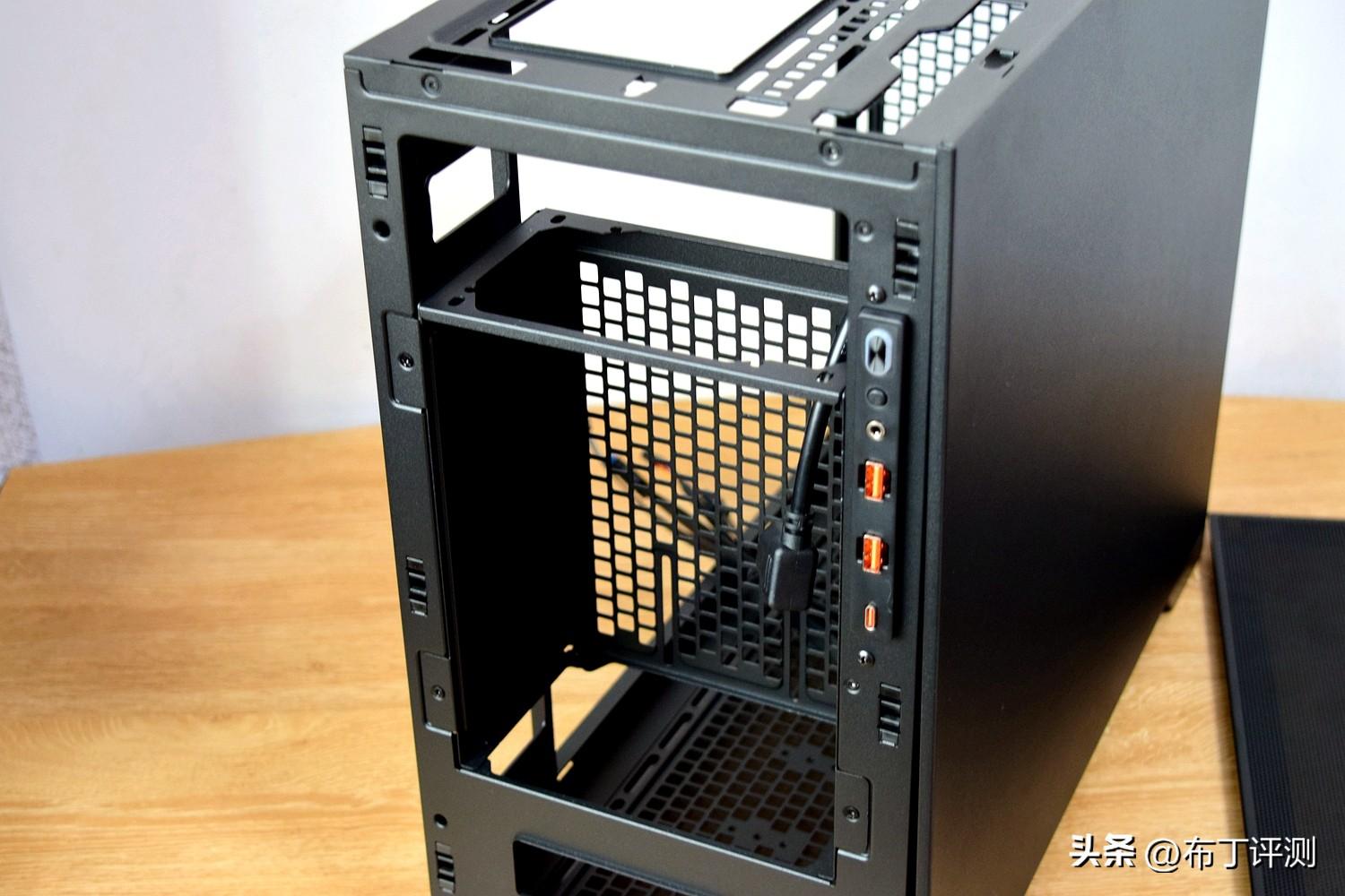 和其他中塔机箱不同,鑫谷孟菲斯机箱的电源位置并没有被放在底部,而是采用了前置电源结构设计,这样的设计还是并不常见的。