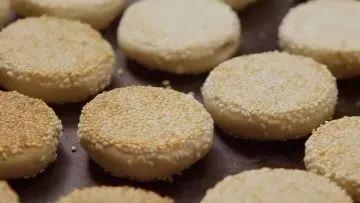 火候到了, 满层的白芝麻被烤得微微出油 ,顶香。