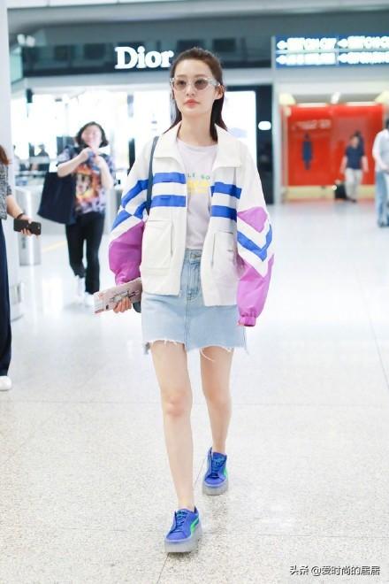现在“女团妆”“女团风”特别火,程潇的这身穿搭就是典型的代表之一。“女团风”的典型穿搭除了百褶裙、露脐装之外,大概就是这样充满青春活力的穿搭了。程潇上身穿搭白色吊带,下身搭配不规则浅蓝色牛仔裙,外面搭配白色防晒衫,活力四射~这样的穿搭不仅仅适用在舞台上,在日常生活中也数组清凉又时尚的款式。