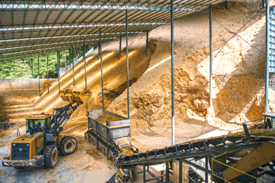 8月24日,铲车在将木屑等原材料运至生产线。近年来,贵州省黔东南苗族侗族自治州剑河从浙江引进以木屑、木糠、菇棒等废弃物为主要原料的活性炭生产企业,为建档立卡贫困户提供就业岗位近50个,助力当地脱贫攻坚。新华社记者陶亮摄