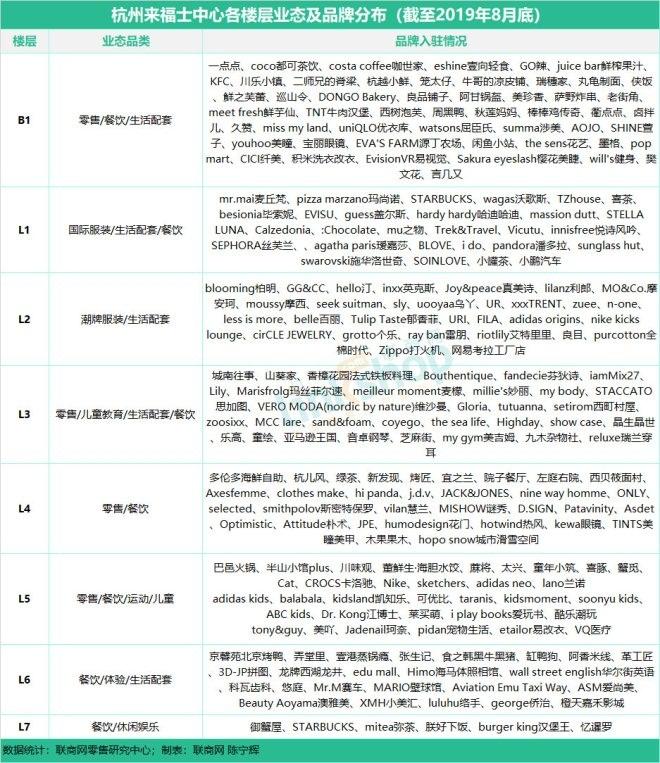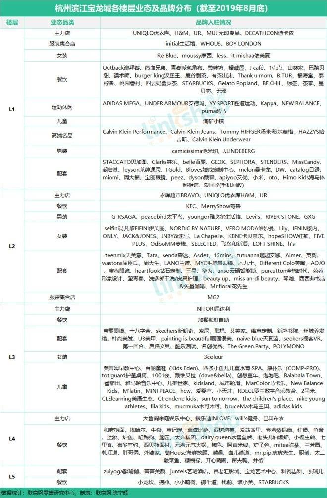 tips:所有项目品牌入驻情况截至到2019年8月底,此后更新过的品牌情况不在此次统计中。