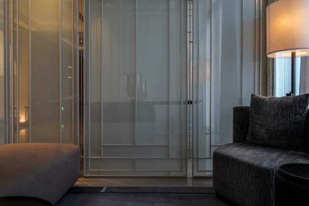 酒店共有251间各式客房及套房,位于建筑的96~106层,本次我入住的是位于104层的行政豪华房(据说共计只有8间)。客房楼层采用了合院式布局,客房分布在以电梯厅为中心的四个方向,每一个门厅,都像自家独立的“小院”。