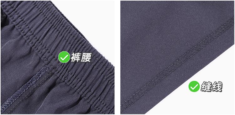 翻开里面,缝线、裤腰都是三针五线裁缝,不易脱线。