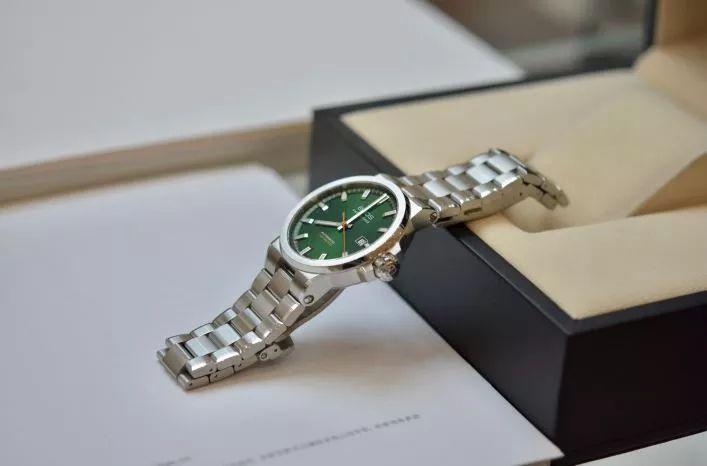 该款拥有鲜艳的墨绿色表盘,十分抢眼。加上长条形夜光刻度指针(蓝色夜光),科技时尚感十足。