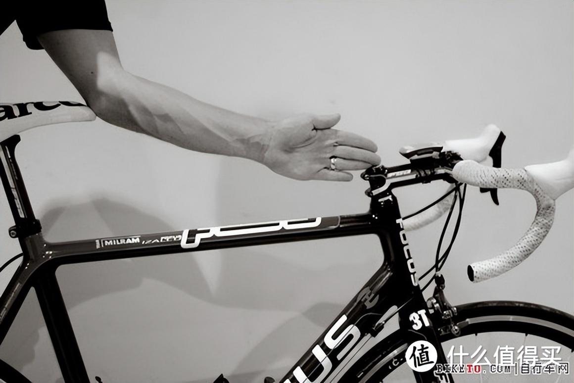 腋窝卡在鞍座中间,手臂伸直,中指指尖应该按在五通/中轴中心,此时鞍座高度就是适合的高度。