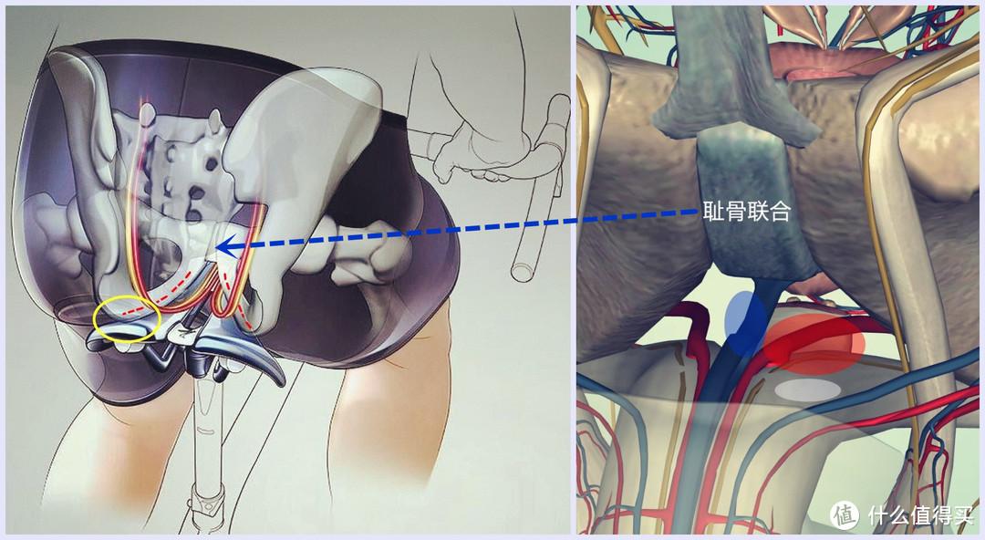 结合这三张图可以很清楚地看到,鞍座中间不做开槽或者不做软处理,骨盆向前倾斜到一定角度,必然压迫耻骨联合下方的血管、神经和软组织。