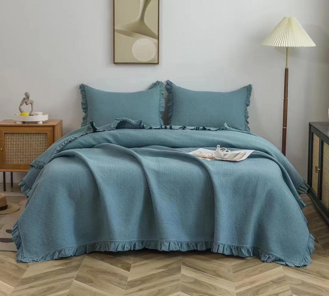 绗缝制品功能性强,绗缝床盖可作为空调被、床单,亦可在冬天盖在被子上当作压被,代替毛毯,既保暖又轻盈,一年四季均可用,是方便多用的床品套件。睡觉盖即透气又保暖,夏天沙发上睡觉披盖,看电视上网冷了披盖都好,也可以铺在贵妃椅上,一毯多用。
