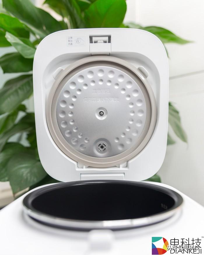 打开米家小饭煲,可以看到里面顶盖部分采用食品级不锈钢材质制作而成,并且设有橡胶封圈,能有保障电饭煲内食物温度,防止意外走温等现象。而锅内,采用传统黑色设计,由于主打单身和小饭量人士市场,所以其容量并不是很大,刚好比较适合1-3人用餐需求,并且,用它来煮粥或煮汤,都合适,一两人饭量一顿就可解决完,没有剩饭剩菜的烦恼。