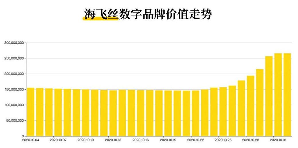 从『数字品牌榜』监测数据也能看到,海飞丝品牌的数字品牌价值在10月24日后开始持续大幅走高,至11月1日时已接近80,000,000DB。