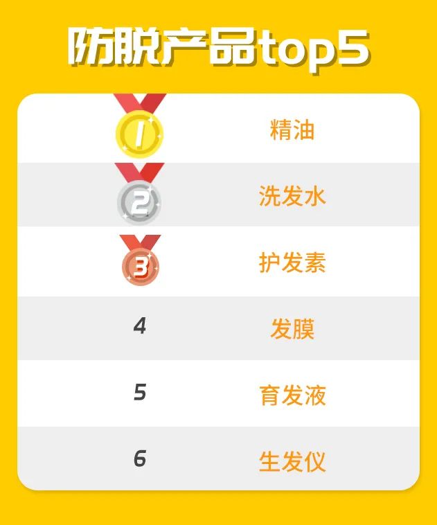除了品牌,我们也筛选出了受“秃秃子”们欢迎的防脱产品top5。