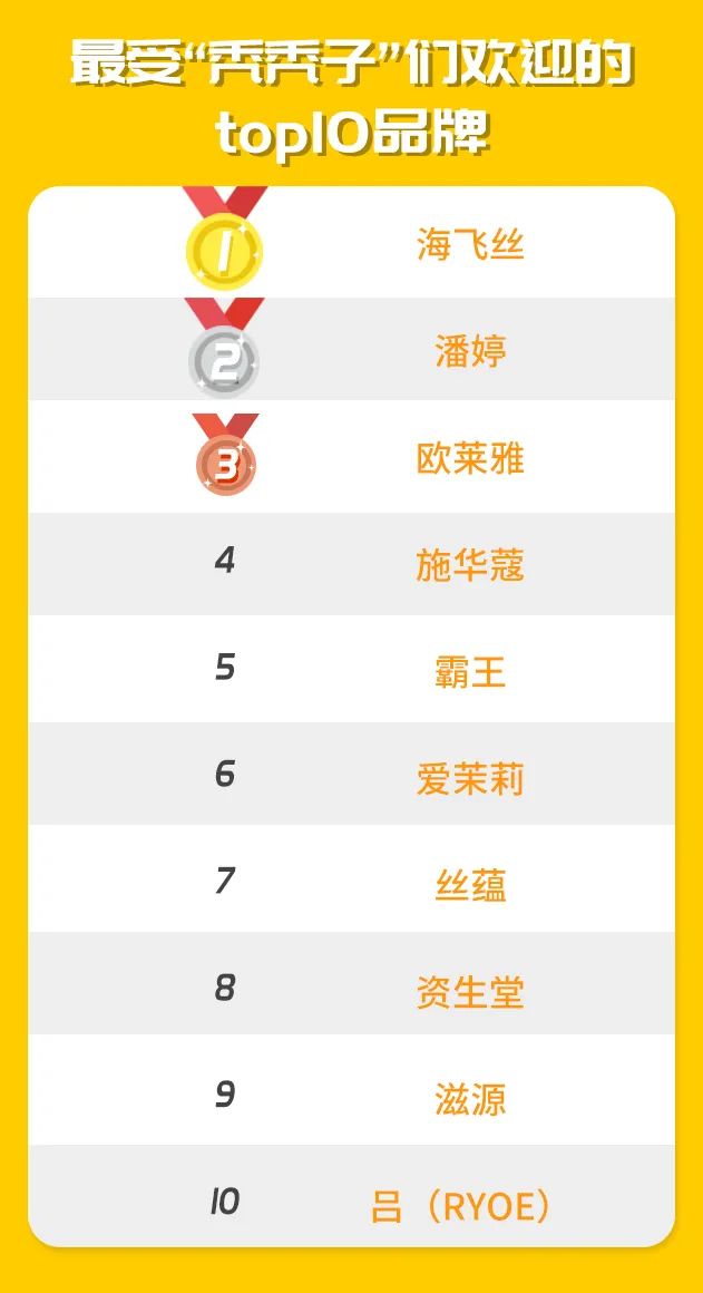 我们观察了双十一前期的微博,筛选出了受“秃秃子”们欢迎的top10品牌。