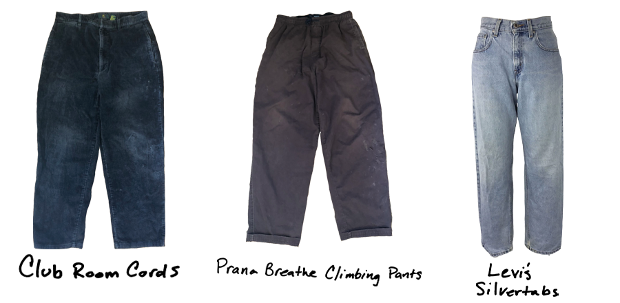 Levi’s Slivertabs:耐穿的裤子,适合各种身材的滑手,大腿和膝盖的位置都留有足够的拉伸空间(虽然偶尔还是会有点紧),不过近两年我都没在二手店里看到这条裤子了。