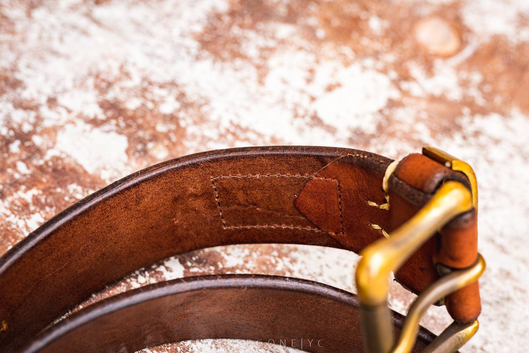 皮带选用牛臀背处的皮,高密度,折了几下感觉灰常扎实,而且带身也有做旧果,这么一条肯定也是lifetime用到死也很难用坏了